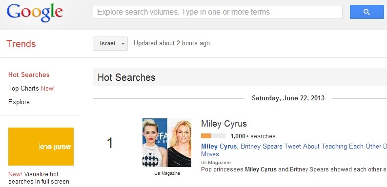 ניתן לצפות בהיקף הפופולאריות של כל חיפוש בכל תחום, למשל איזו שחקנית קולנוע מתוקשרת יותר בימים אלו.