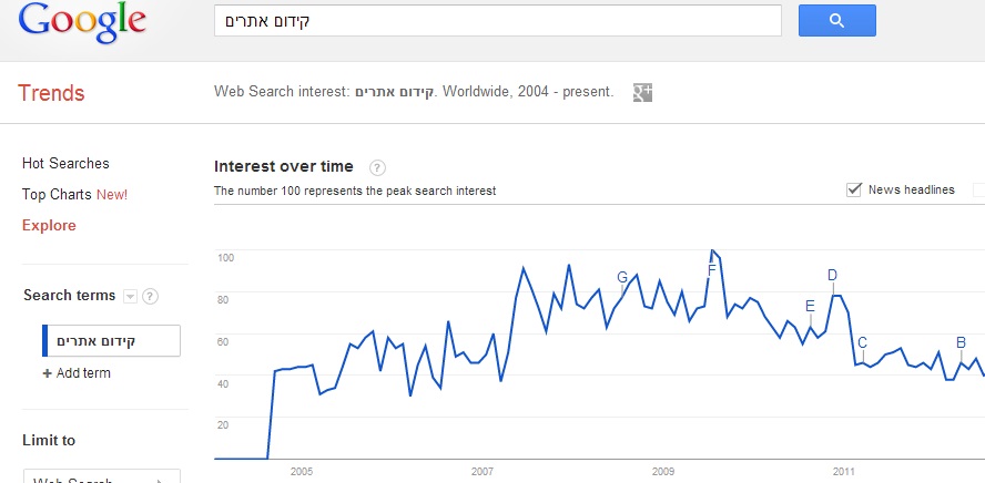 משמאל לכל תוצאה ישנם חצים המראים על ירידה או עלייה בפופואלריות בחיפוש של כל ביטוי באותו התחום הנבחר.