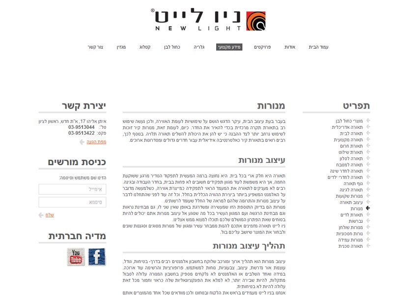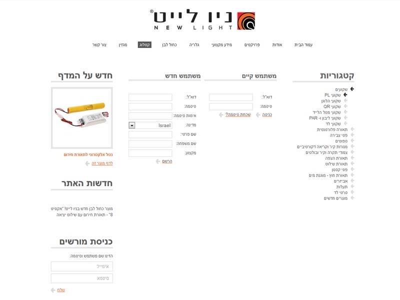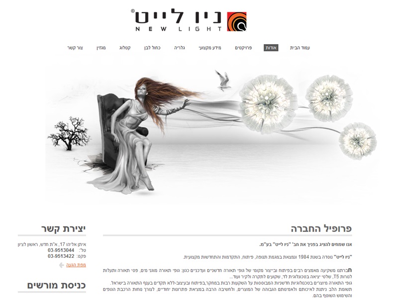 New Light אודות הפרויקט גלריית תמונות עיצוב ובניית אתר קטלוג עבור חברת New Light - פיתוח וייצור גופי תאורה.